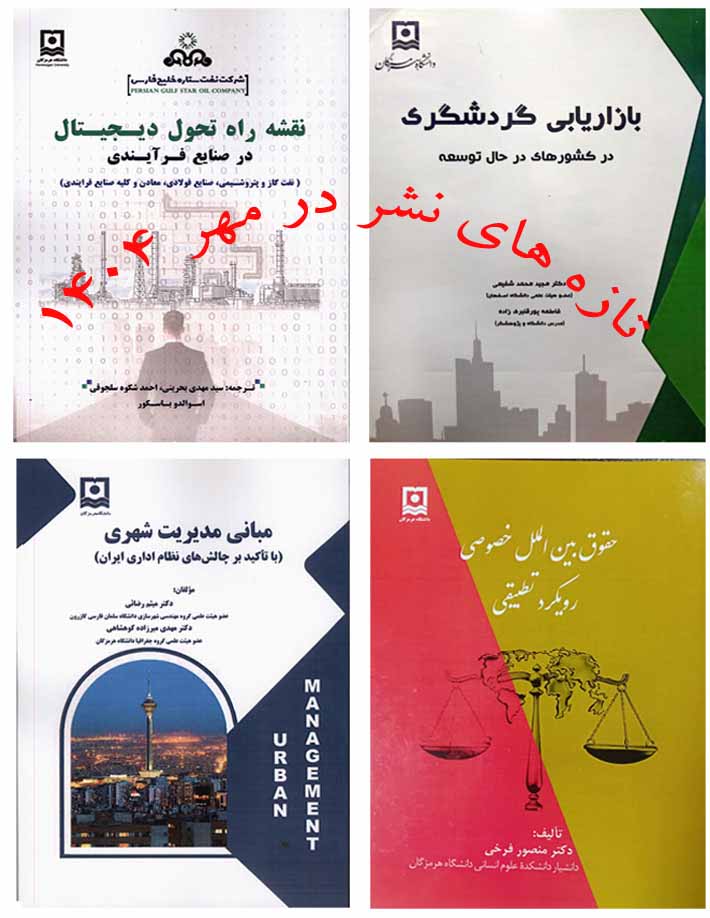 چاپ جدید4 عنوان کتاب در مهرماه 1404 توسط نشر دانشگاه هرمزگان
