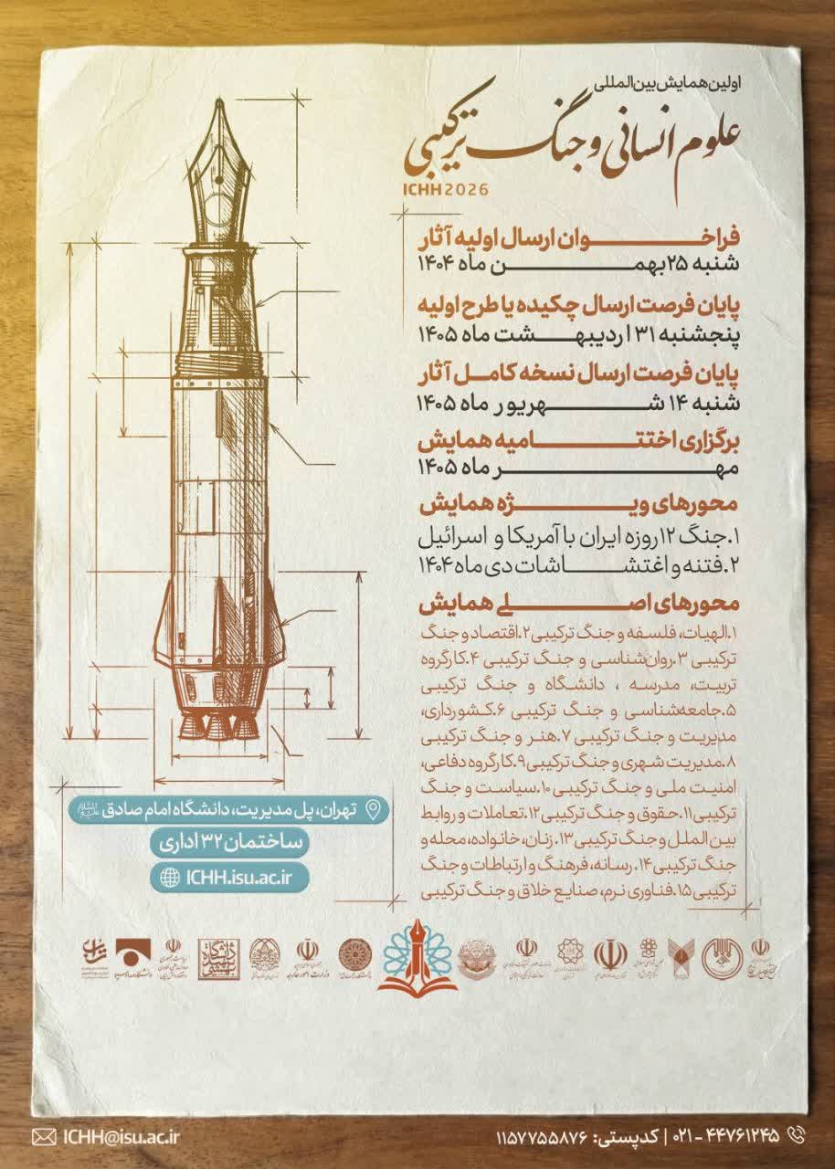 نخستین همایش بین‌المللی «علوم انسانی و جنگ ترکیبی» با هدف تبیین ابعاد نظری این پدیده و نقش دانشگاه‌ها در مقابله با تهدیدات نرم، ۳۱ اردیبهشت ۱۴۰۵ در دانشگاه امام صادق (ع) برگزار می‌شود.