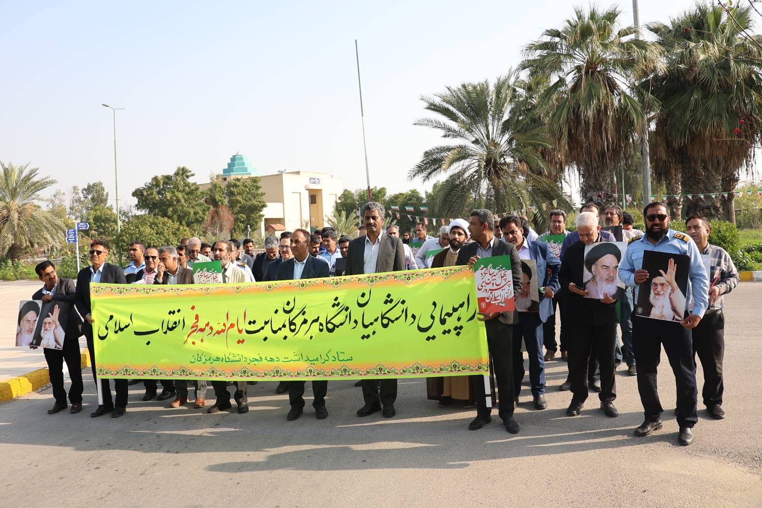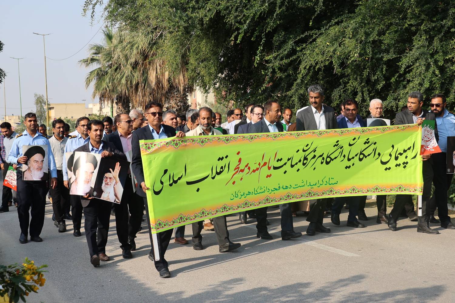 به مناسبت دهه مبارک فجر، راهپیمایی با حضور هیئت‌رئیسه، اساتید وکارکنان دانشگاه هرمزگان برگزار شد.