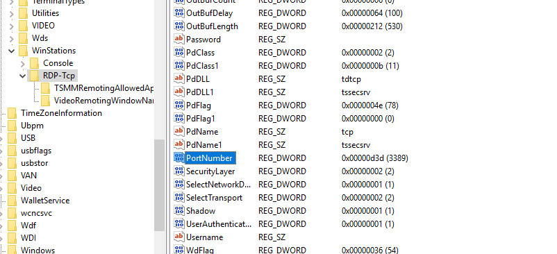 3- Change 3389 port number to a desired number (note that well-known ports should not be used)